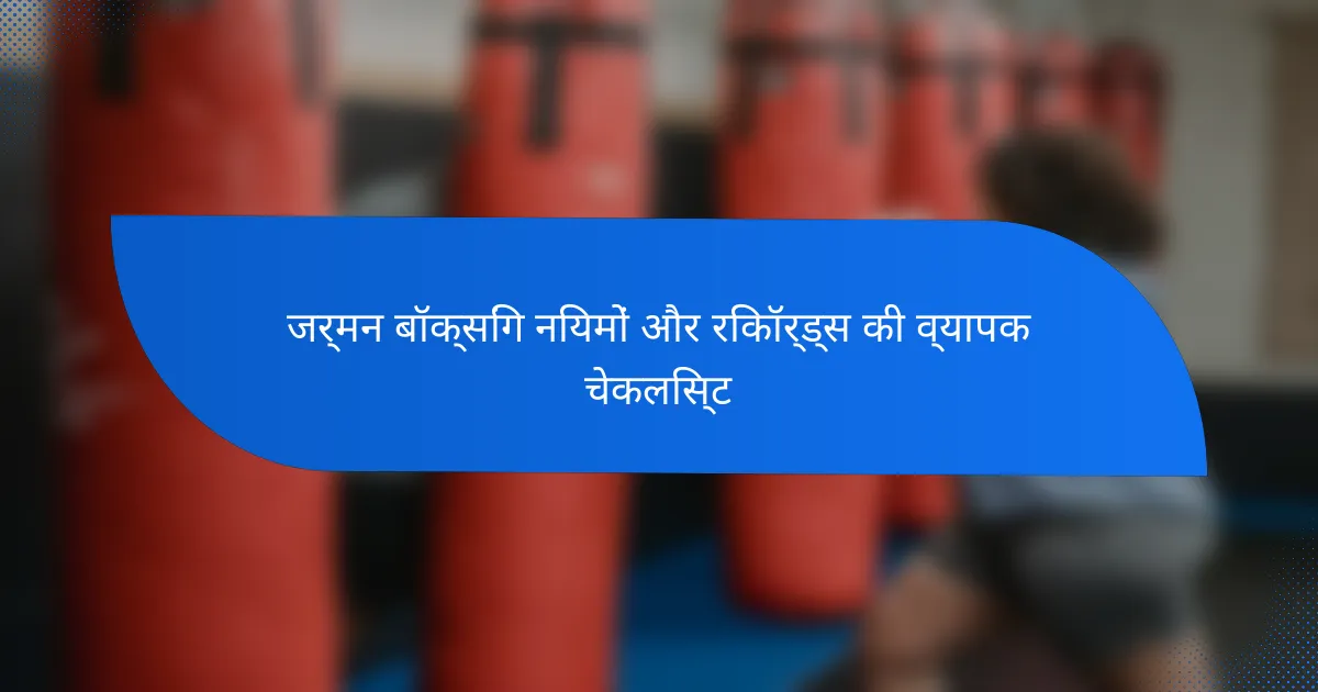 यह व्यापक चेकलिस्ट जर्मनी में मुक्केबाजी को नियंत्रित करने वाले प्रमुख नियमों और रिकॉर्डों को रेखांकित करती है, जैसा कि जर्मन बॉक्सिंग फेडरेशन (BDB) द्वारा स्थापित किया गया है। यह लाइसेंसिंग, चिकित्सा मानकों और सुरक्षा प्रोटोकॉल जैसे आवश्यक पहलुओं को संबोधित करती है, जबकि यह भी विस्तार से बताती है कि मुक्केबाजी रिकॉर्ड कैसे बनाए जाते हैं ताकि लड़ाकों के प्रदर्शन को ट्रैक करने में पारदर्शिता और सटीकता सुनिश्चित की जा सके।