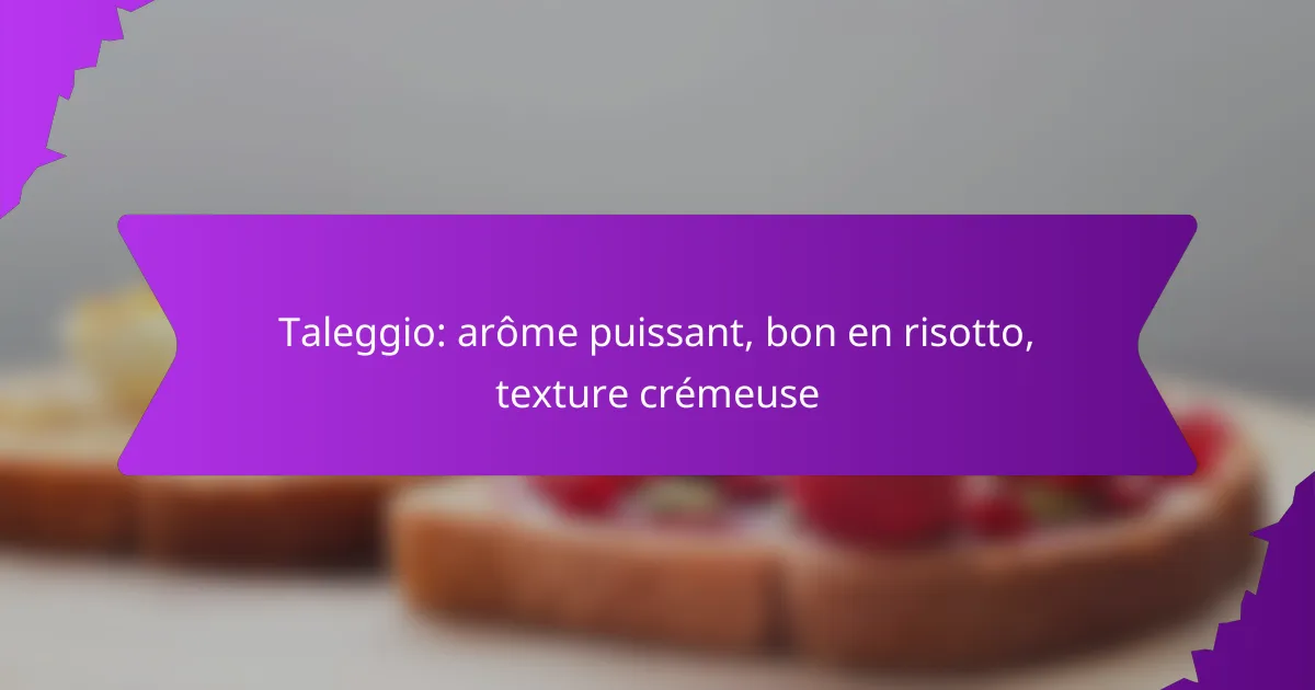 Le Taleggio est un fromage italien apprécié pour son arôme puissant et sa texture crémeuse, ce qui en fait un excellent choix en cuisine. Il se marie particulièrement bien avec des plats comme le risotto, apportant une richesse et une profondeur de saveur.