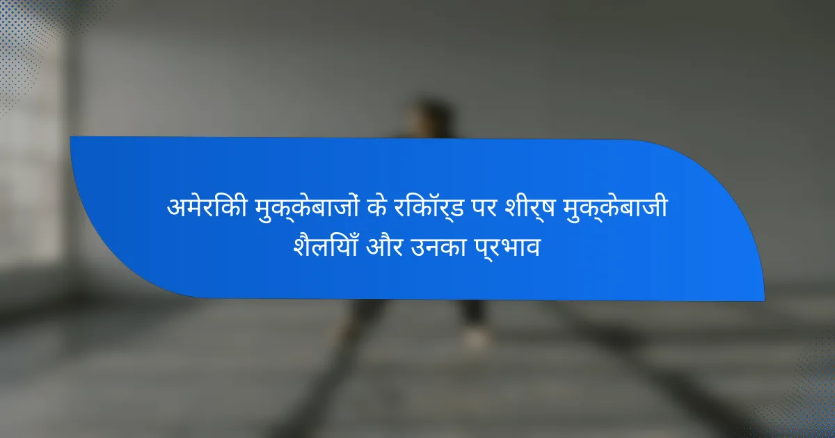 बॉक्सिंग शैलियाँ अमेरिका में फाइटर्स के प्रदर्शन और सफलता को आकार देने में महत्वपूर्ण भूमिका निभाती हैं। पारंपरिक, साउथपॉ और स्विच-हिटर जैसी विशिष्ट तकनीकों के साथ, प्रत्येक शैली एक बॉक्सिंग रणनीति और रिंग में प्रभावशीलता को प्रभावित करती है। इन शैलियों को समझना फाइटर के रिकॉर्ड का विश्लेषण करने के लिए आवश्यक है, क्योंकि ये मैचों के परिणाम को निर्धारित कर सकती हैं और एक फाइटर के करियर की दिशा को प्रभावित कर सकती हैं।